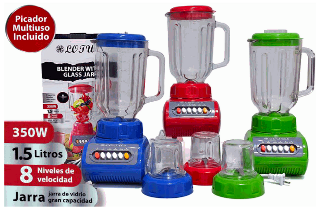 Licuadora Economica Colorida 350W Lotus 1.5 Lts.