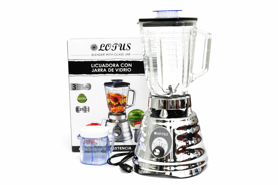 Licuadora Clásica 600W Lotus 1.25 Lts. -Voltage 120v, frecuencia 60Hz-3 Velocidades-Vaso en Vidrio-5...
