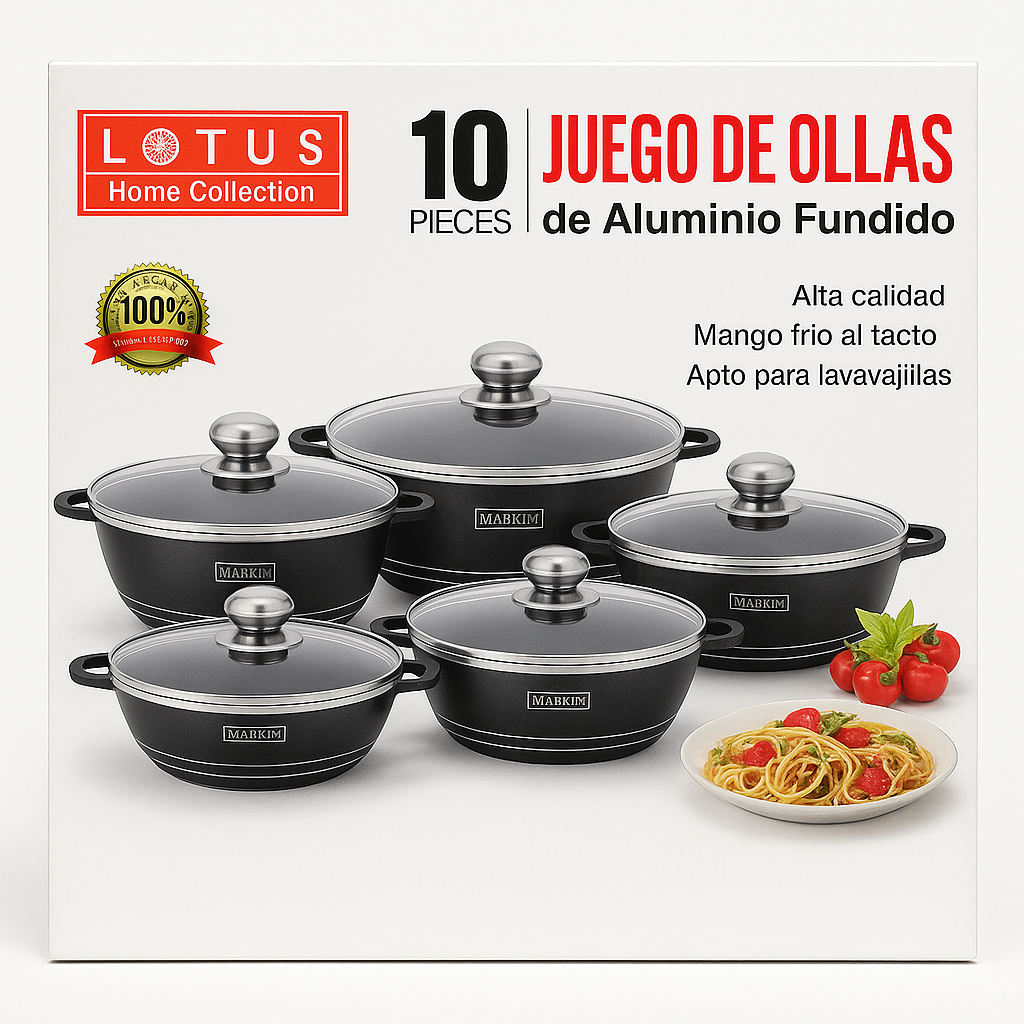 Juego de Ollas de Aluminio Fundido Lotus 10 Pz.